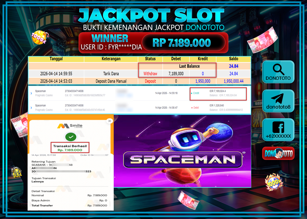 Bukti Jackpot DONOTOTO Slot Online Selasa 14 April 2026 7.189.000 - LUNAS