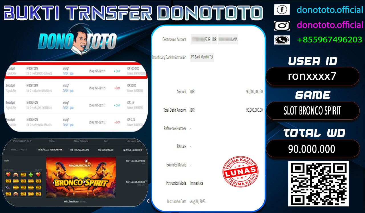 Bukti Jackpot DONOTOTO Slot Online Sabtu 26 Agustus 2023 90.000.000 - LUNAS
