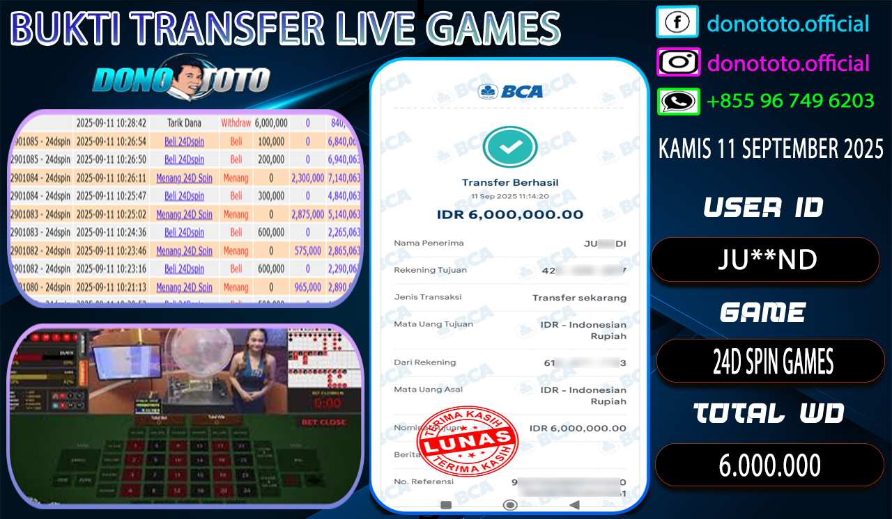 Bukti Jackpot DONOTOTO Live Games Kamis 11 September 2025 6.000.000 - LUNAS