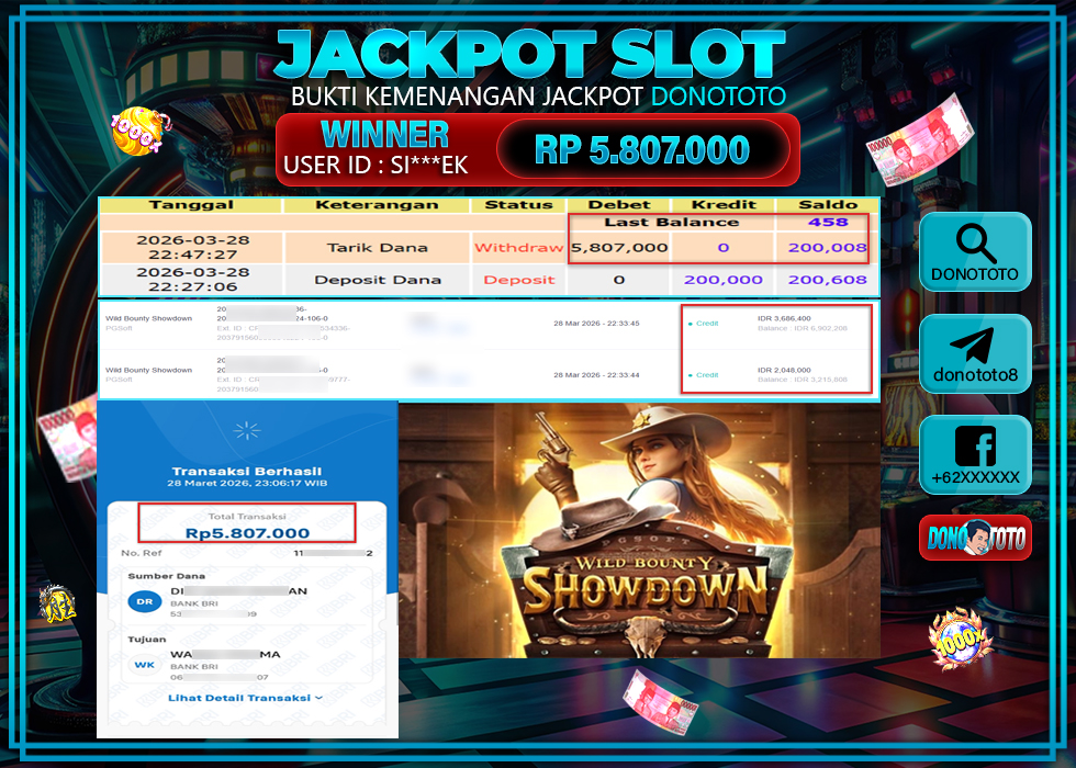Bukti Jackpot DONOTOTO Slot Online Sabtu 28 Maret 2026 5.807.000 - LUNAS