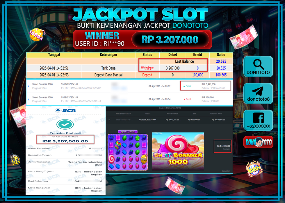 Bukti Jackpot Slot Online DONOTOTO Rabu 1 April 2026 – DONOTOTO adalah bo togel online terpercaya. Berikut ini kami berikan info bukti jackpot member DONOTOTO yang sudah kami bayar lunas dalam permainan slot online.
