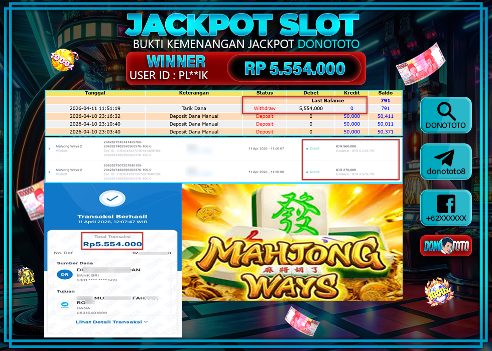 Bukti Jackpot DONOTOTO Slot Online Sabtu 11 April 2026 5.554.000 - LUNAS