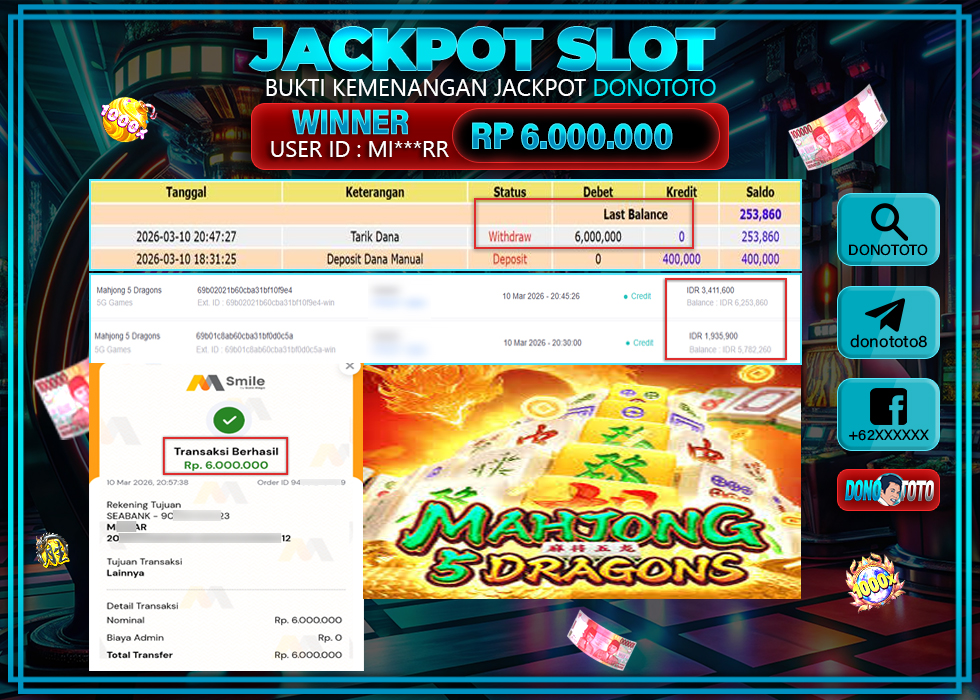 Bukti Jackpot DONOTOTO Slot Online Selasa 10 Maret 2026 6.000.000 - LUNAS