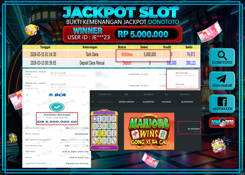 Bukti Jackpot DONOTOTO Slot Online Minggu 15 Maret 2026 5.000.000 - LUNAS