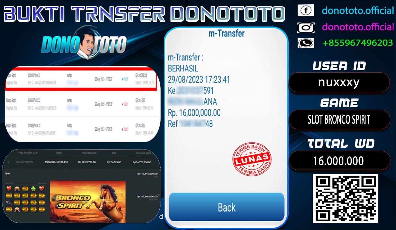 Bukti Jackpot DONOTOTO Slot Online Selasa 29 Agustus 2023 16.000.000 - LUNAS