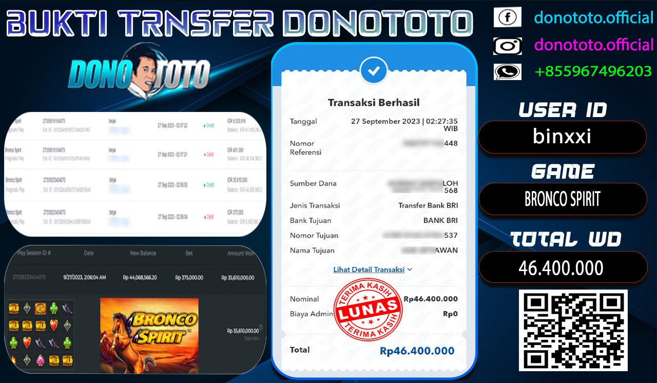 Bukti Jackpot DONOTOTO Slot Online Rabu 27 September 2023 46.400.000 - LUNAS